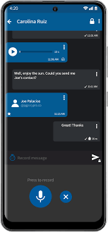 Envie e receba mensagens de voz criptografadas e ouça-as pelo fone de ouvido ou alto-falante.