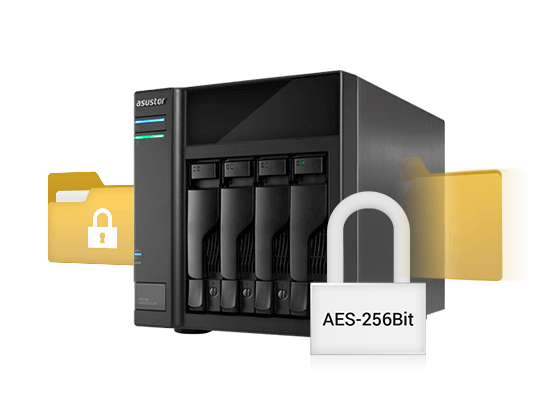 Sim. Ele suporta RAID com redundância e criptografia AES 256 bits, além de bandejas de disco com trava de segurança.