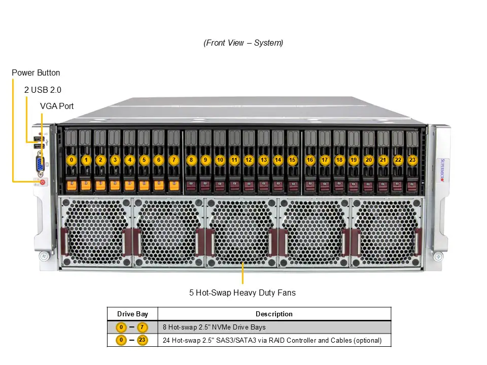 8 baias frontais para NVMe de 2,5″ (padrão)