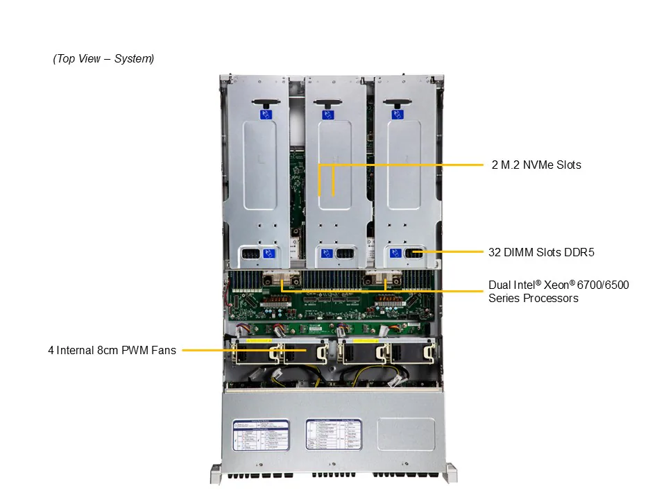 Processadores: 2x soquetes E2 (LGA-4710), Xeon 6/6500 até 350W