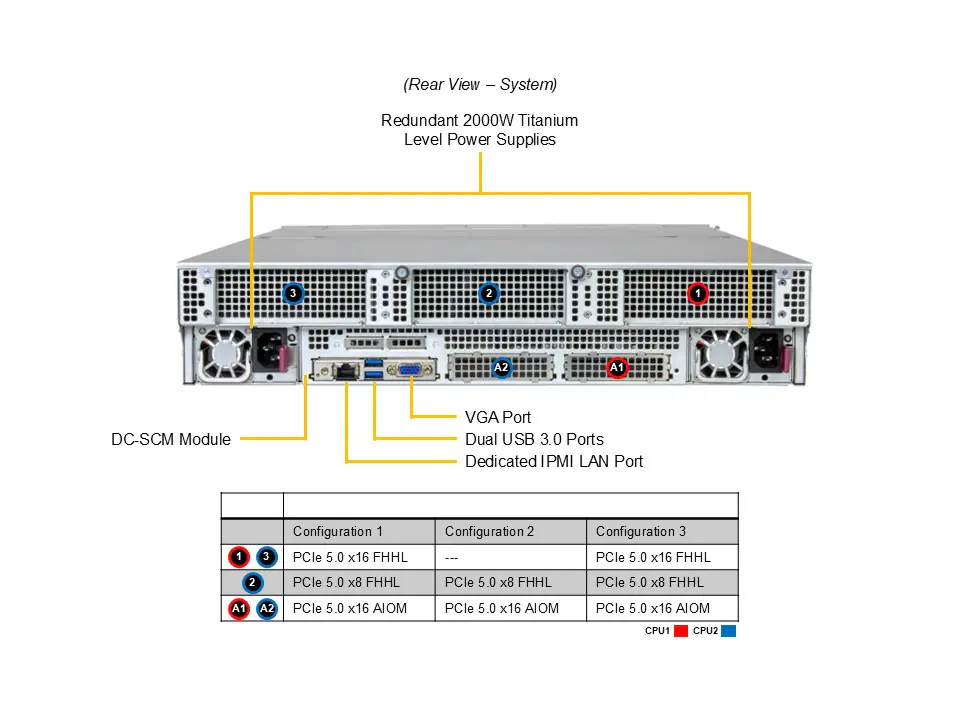 2x PCIe 5.0 x16 FHHL + 1x PCIe 5.0 x8 + 2x PCIe 5.0 AIOM
