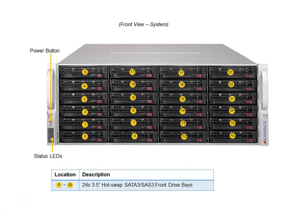 • 36 baias hot-swap SAS3/SATA3 (24 frontais, 12 traseiras)