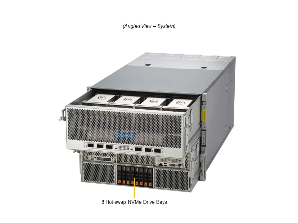 O SuperServer SYS-822GA-NGR3 combina desempenho extremo em IA, alta densidade 8U, expansão flexível e segurança avançada, ideal para empresas que demandam treinamento massivo de modelos LLM, computação científica e automação industrial.