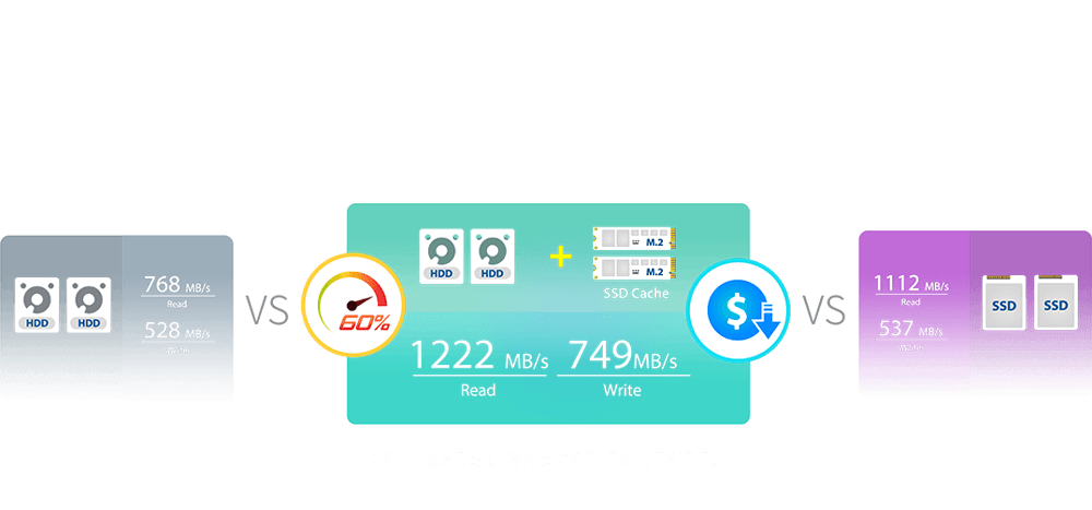 • Performance: redução do tempo de leitura/gravação em até 60% com cache SSD NVMe;