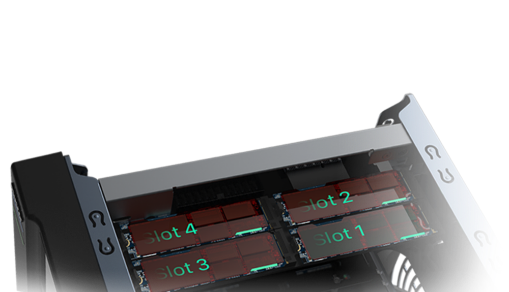 O suporte a quatro slots M.2 NVMe PCIe 4.0 dobra o desempenho em relação à geração anterior PCIe 3.0. Isso abre possibilidades tanto para uso de cache SSD em operações de alto IOPS quanto para configuração de pools de armazenamento de altíssima velocidade. Aliado aos compartimentos para HDDs, o modelo entrega flexibilidade para equilibrar custo e desempenho conforme a necessidade.
