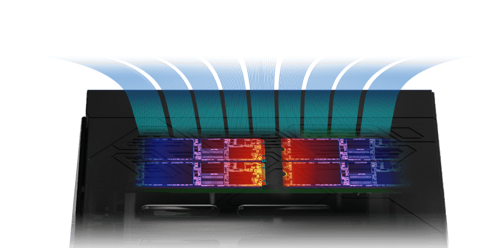 Quatro slots M.2 NVMe aceleram tarefas de alto I/O, essenciais para edição de vídeo, bancos de dados e cargas de trabalho virtualizadas. A instalação sem ferramentas e o design de dissipação de calor garantem que os SSDs operem com desempenho máximo e vida útil prolongada.