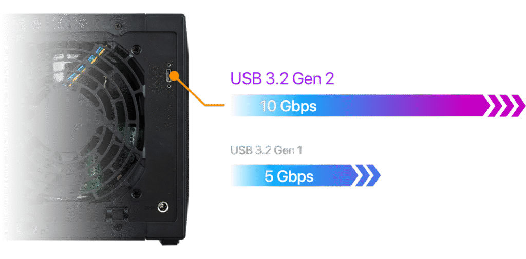 O AS5004U resolve esse dilema com uma proposta clara: expansão modular, eficiente e integrada ao ecossistema NAS da ASUSTOR. Seu diferencial começa pela adoção da interface USB 3.2 Gen2, que entrega até 10 Gbps de largura de banda, permitindo que fluxos de trabalho intensivos em dados — como edição de vídeo ou replicação de grandes volumes — não sofram gargalos de performance.