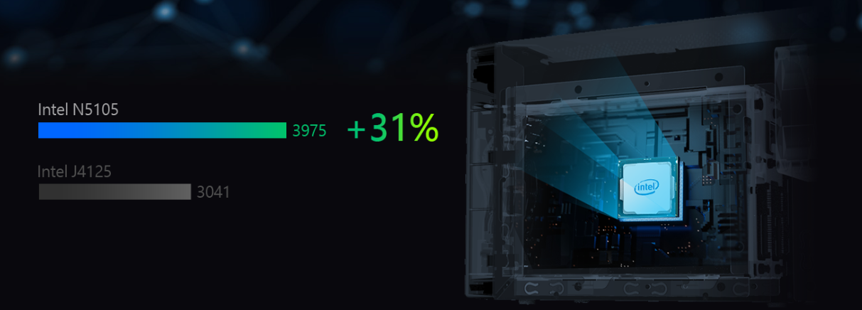 No coração do Lockerstor 6 Gen2 está o Intel Celeron N5105, fabricado em 10 nm e oferecendo até 31% mais performance em relação à geração Gemini Lake. Com clock base de 2.0 GHz e turbo de 2.9 GHz, esse processador garante resposta ágil para cargas simultâneas de virtualização, transcodificação e colaboração em nuvem. Em termos práticos, significa poder editar e renderizar vídeos diretamente no NAS sem depender exclusivamente da estação de trabalho.