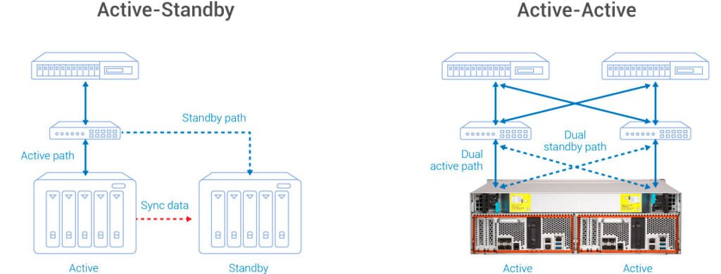 O ES1686dc adota duas controladoras que compartilham serviços de armazenamento e permitem balanceamento de carga. Ao criar múltiplos pools e distribuí-los entre controladoras, o sistema oferece saída simultânea, reduzindo gargalos e elevando a disponibilidade. Em caso de falha, uma controladora assume rapidamente, minimizando impacto aos serviços.