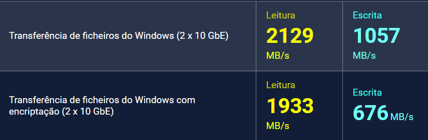 2129 MB/s de leitura e 1057 MB/s de escrita em ambientes de teste. Isso