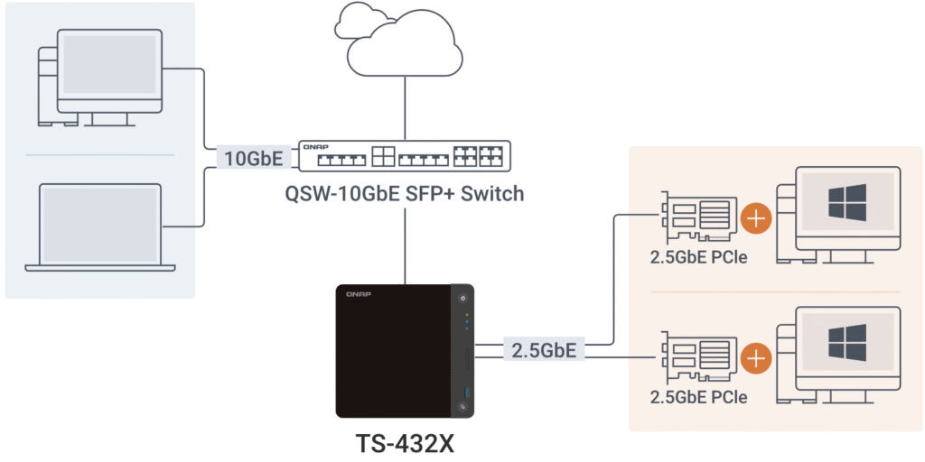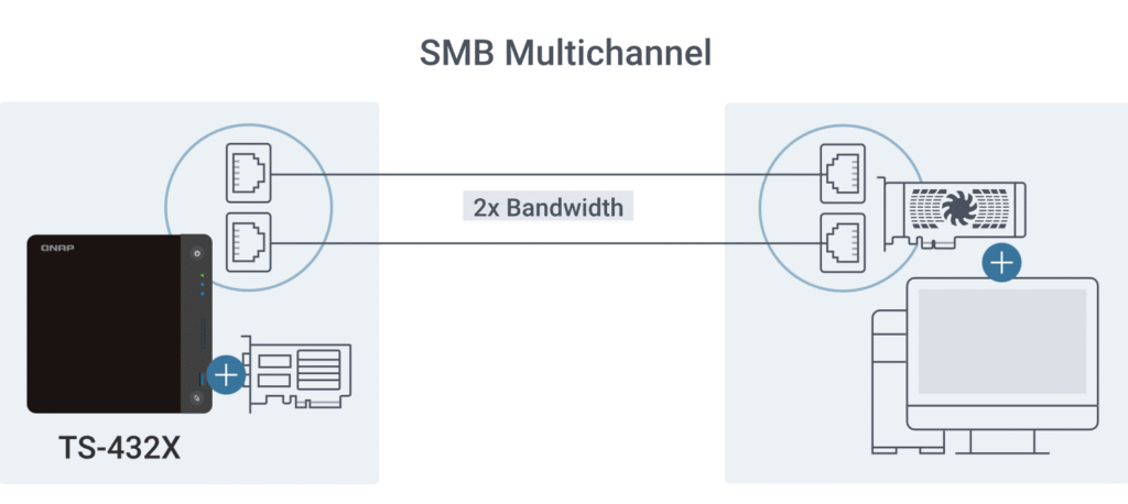 Com suporte a multicanal SMB e Port Trunking, o TS-432X adapta-se a diferentes cenários de rede.