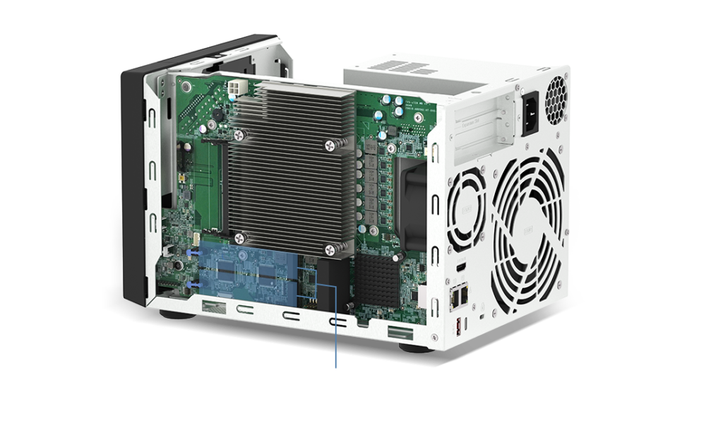 Da mesma forma, a utilização de NVMe como cache ou como volume do sistema operacional QuTS hero traz ganhos claros de desempenho, mas implica investimento adicional em SSDs compatíveis.