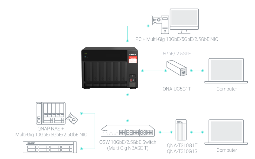 Além disso, a integração com switches 2,5/10 GbE e adaptadores USB de alta velocidade garante que o NAS possa se conectar a ambientes de rede existentes sem comprometer a produtividade ou exceder orçamentos.