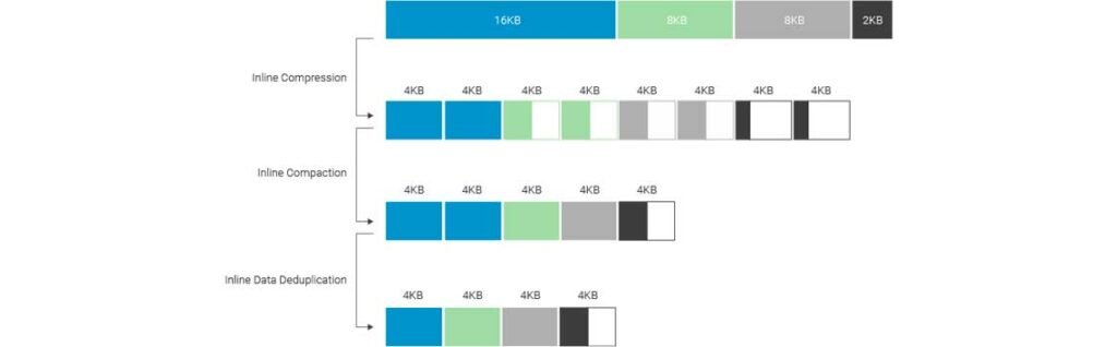 Técnicas como gravação coalescente transformam operações aleatórias de escrita em sequenciais, aumentando o desempenho e reduzindo o desgaste do SSD. O superprovisionamento reserva espaço para garantir que blocos possam ser reutilizados eficientemente, mesmo com pools quase cheios, enquanto o suporte ao comando TRIM permite a limpeza inteligente de blocos, preservando a saúde dos dispositivos ao longo do tempo.