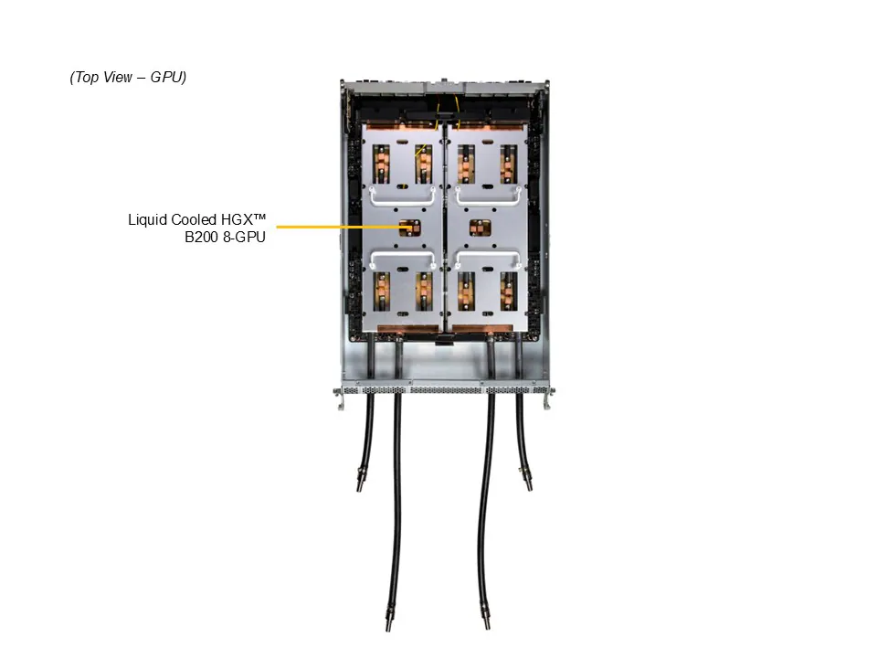 O suporte a até 8 GPUs NVIDIA HGX B200 SXM com NVLink e NVSwitch habilita interconexão de alta velocidade entre GPUs, crucial para treinamentos de modelos de deep learning em grande escala e simulações científicas complexas. O design líquido (D2C Cold Plate) garante eficiência térmica e manutenção de performance consistente sob cargas extremas.